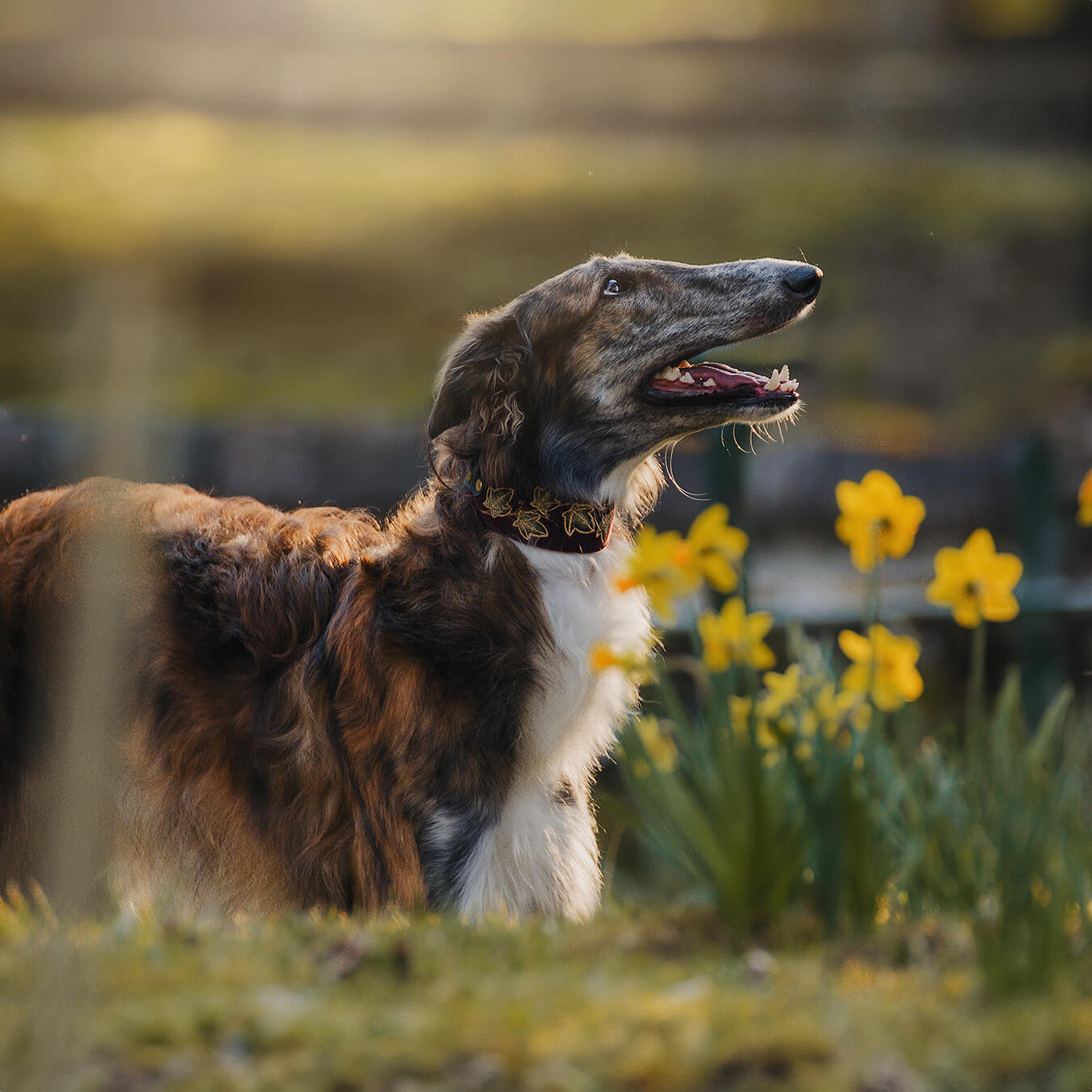haftowana welurowa obroża dla charta | półzaciskowa lub zapinana na klasyczną klamrę | ENCHANTED IVY | gotowe obroże – różne rozmiary