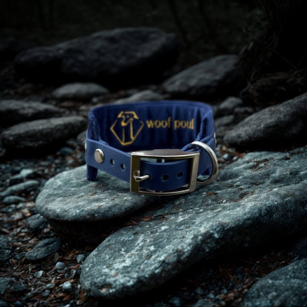Zapinana na oryginalny BioThane® w kolorze navy blue o szerokości 19 mm.